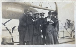 John and Frances’ great-grandson William L. Grayson (1870-1941) and his wife Lillian (1872-1936) had six children that lived to adulthood, including our beloved grandfather Leon (1906-1993). All three of Leon’s sisters married sea-going men. Lynne (1893-1961) wed Coast Guard Lieutenant Leo C. Mueller (1886-1980) in October 1916. The following photo is from an album preserved by the descendants of Leon’s and Lynne’s brother Spence (1900-1990).