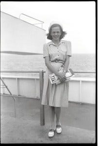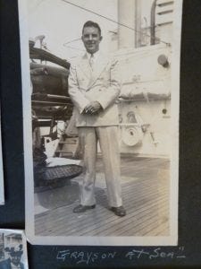 Our grandparents Leon and Mary Grayson left us two scrapbooks, a large photo album, and a drawer crammed with photos and negatives. In a college scrapbook, Leon cut and pasted three shipboard photos.