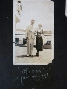 Leon’s caption “Miami” – (En Route) is a puzzler. His erased original caption is illegible. He and Mary met sometime in 1932 or ’33, and reportedly eloped on New Year’s Eve 1934. My initial guess was a 1934 honeymoon and perhaps it was, but we never heard mention of a Miami trip. Knowing Leon and Mary’s senses of humor, it could be an inside joke. The elopement was kept secret from both families until October 1935, when Mary joined Leon in their new hometown and the couple was sacramentally united in a Washington D.C. Catholic Church.